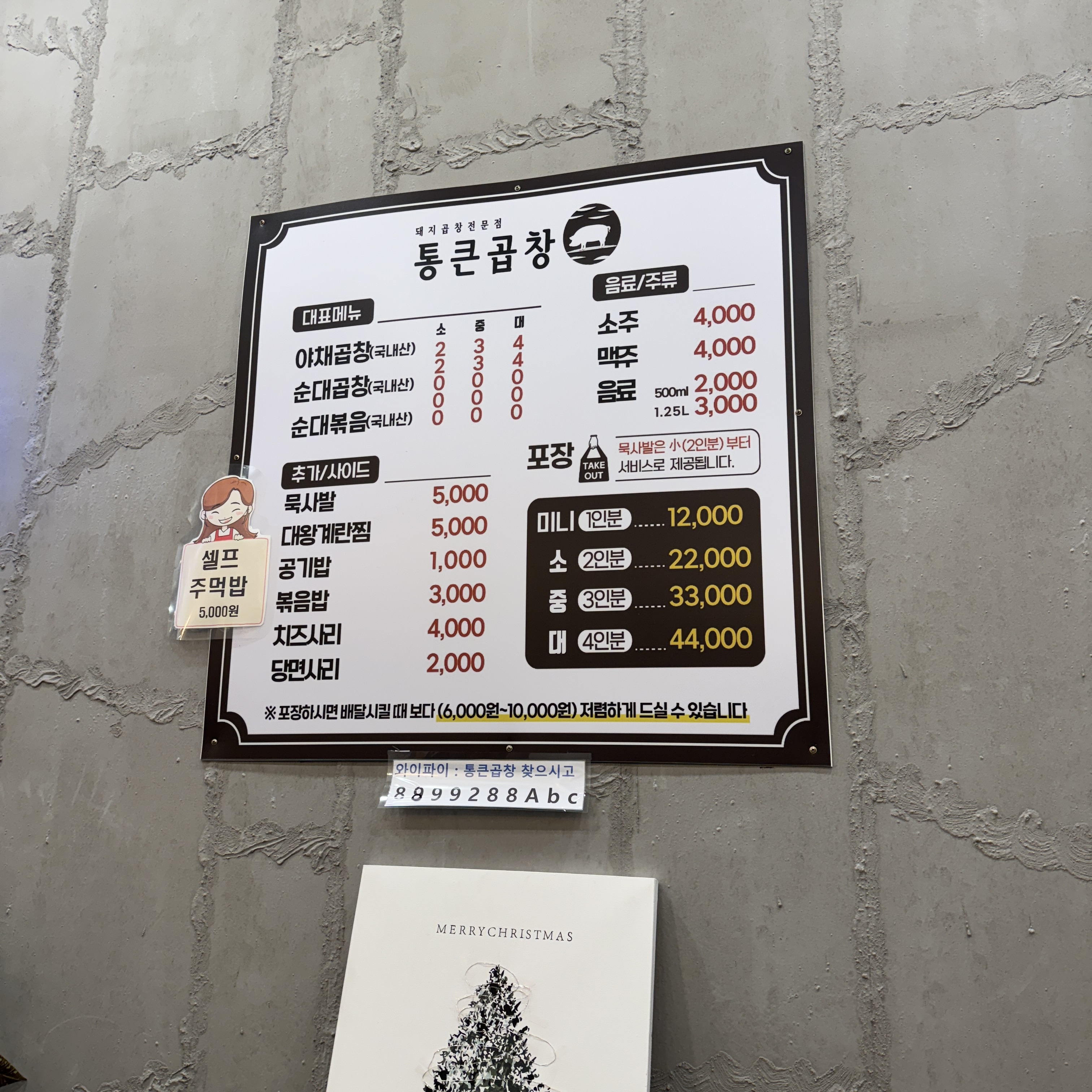 메뉴는 야채곱창, 순대곱창, 순대볶음이 있는데요.