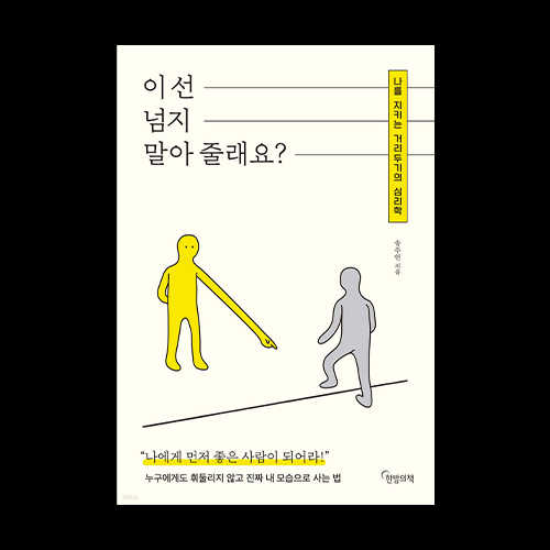 《이 선 넘지 말아줄래요》는 관계 속에서 나를 잃지 않고 스스로를 지킬 수 있는 현실적인 방법을 다룹니다. 저자는 타인의 요구에 무조건 맞추지 않고, 나 자신을 지키기 위한 구체적인 경계 설정 방법을 통해 독자가 보다 자존감 높은 삶을 살 수 있도록 돕습니다. 특히 갈등을 피하거나 무조건 착하게 보이려는 분들에게 이 책은 경계 설정의 중요성과 기술을 구체적으로 알려주는 좋은 가이드가 됩니다. 경계를 세우는 것이 결코 이기적인 것이 아니며, 오히려 나와 타인 모두를 위해 필요한 과정이라는 점을 깨닫게 해주는 이 책을 추천드립니다.